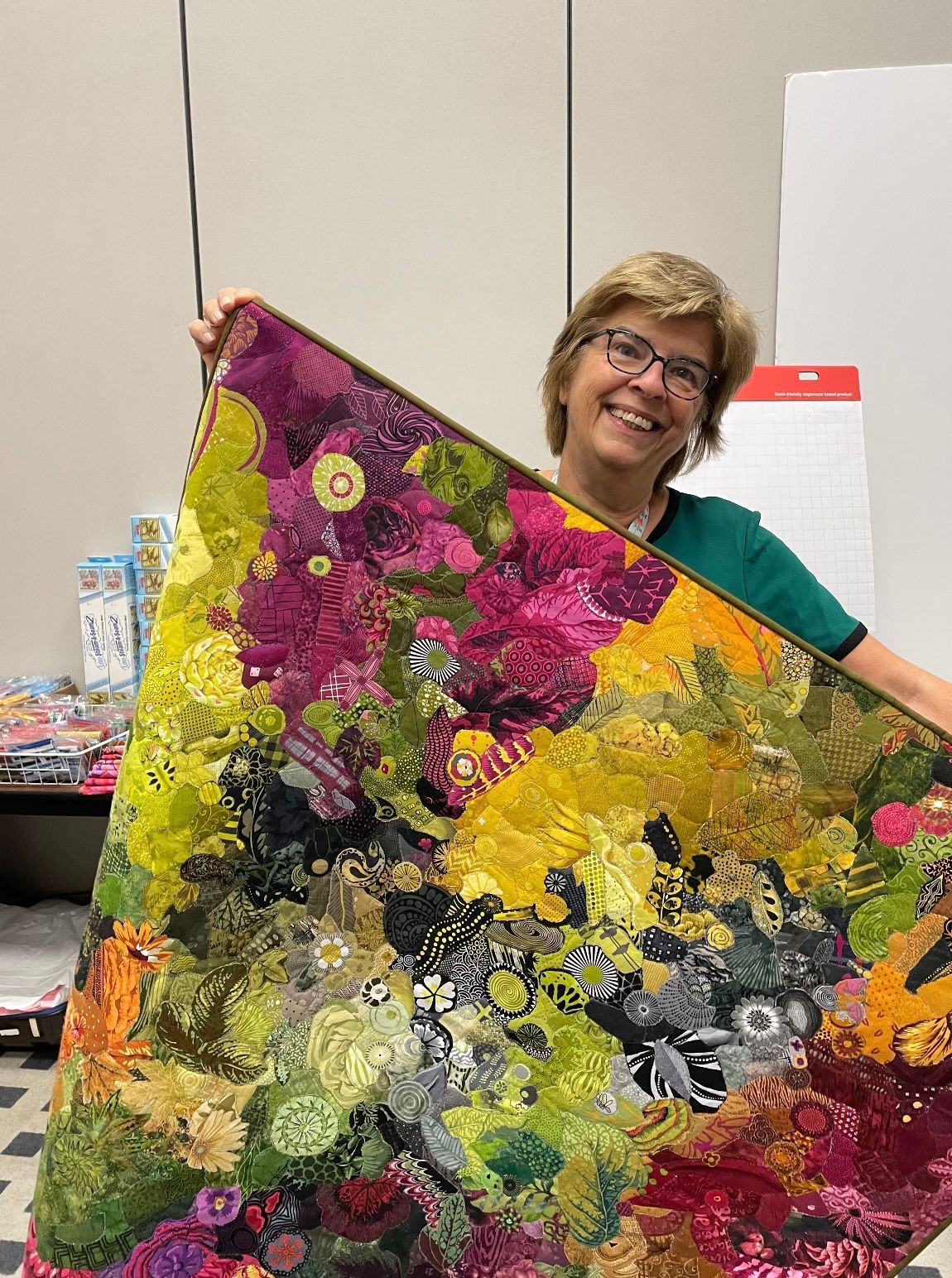 Carly sold Webfabrics in June of 2022. She works in her studio on her art and teaches collage quilting at guilds and shows (national and international). In an effort to help her students find the fabrics they need, she started www.collagefabric.com in September 2024, a site dedicated to collage quilting with super small fabric cuts.