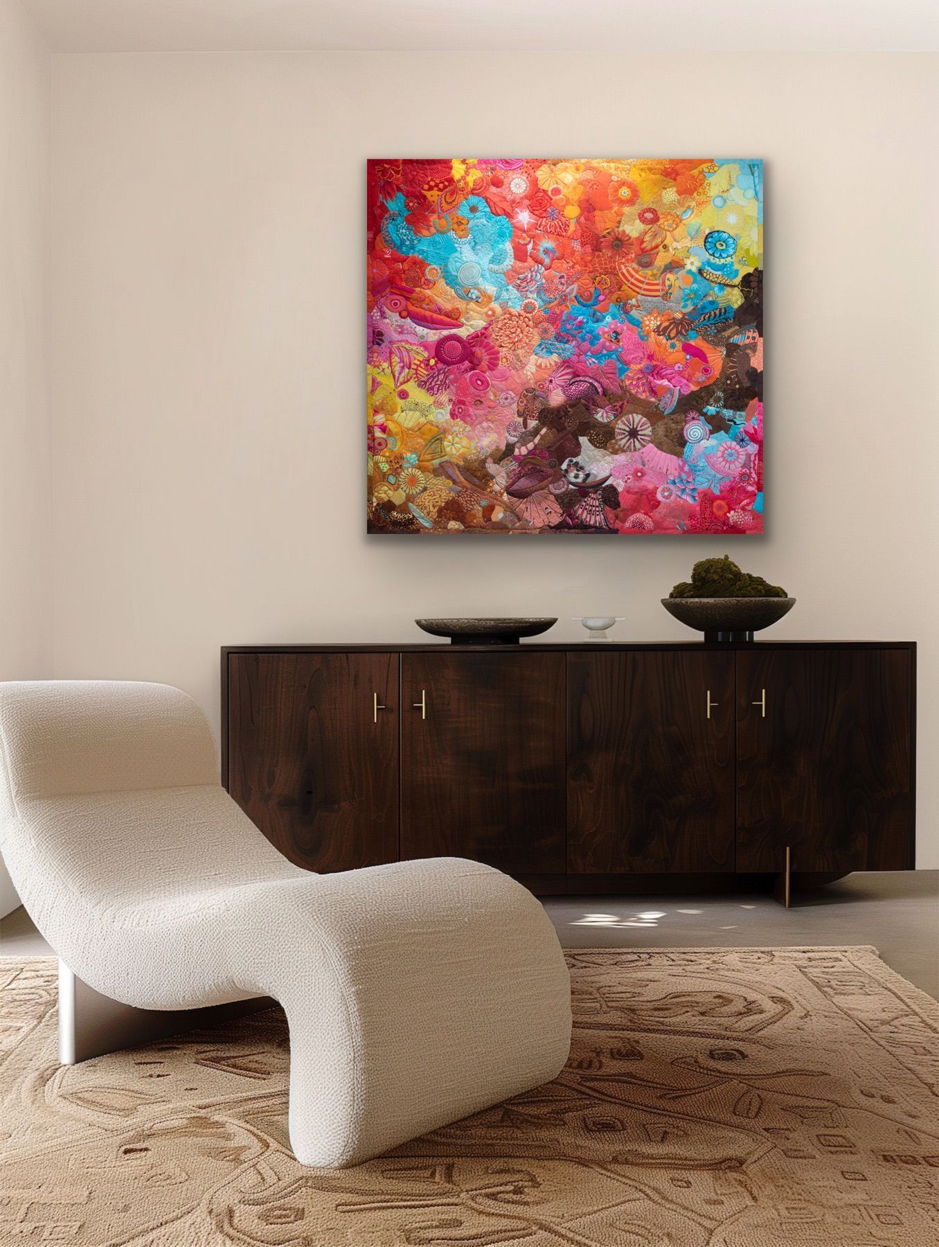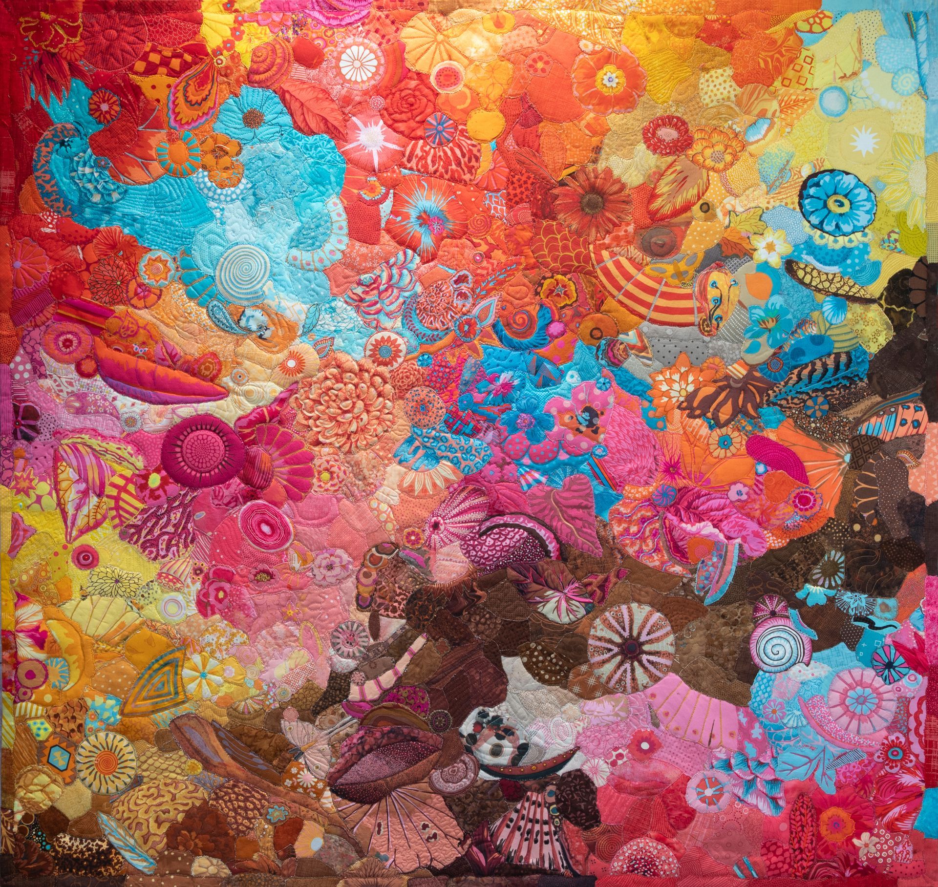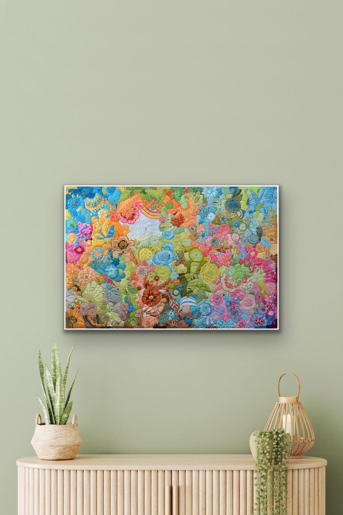 I make these quilts for my enjoyment, but some are available for purchase or can be given away to charity. Please contact me to discuss. I also make organic color collage as a commission. You can contact me to discuss an organic color collage commission in the colors of your choice.