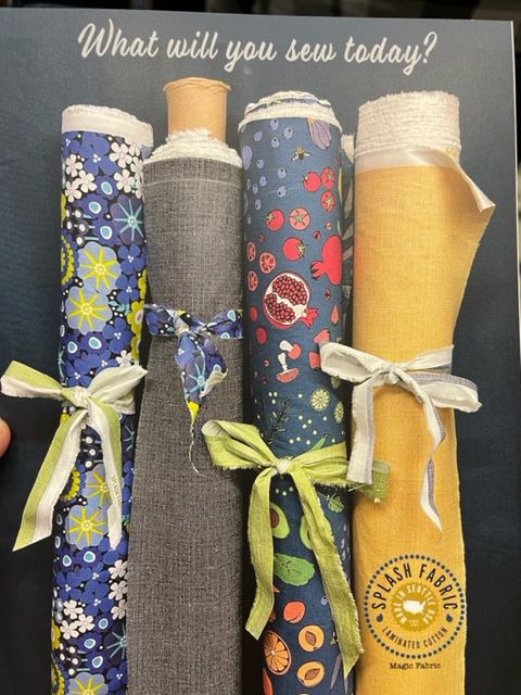 It's fun to go to Market and see old friends and acquaintances, but looking for what is really new is one of the main reasons to go. Unfamiliar with this company I attended the schoolhouse of Splash Fabric. This company produces and sells laminated cottons and attended Market for the first time. It is an entrepreneurial company with a delightful couple, Tracy and David Krauter, at the helm. Tracy is the creative mind and has come up with about 25 different fabrics. That is not very many at a Market that shows thousands of fabrics, but this Seattle based company is much about quality: Quality of life, quality of environment, quality of fabric. They are truly makers that make fabric for people who love to make things. Their passion was obvious at hello.