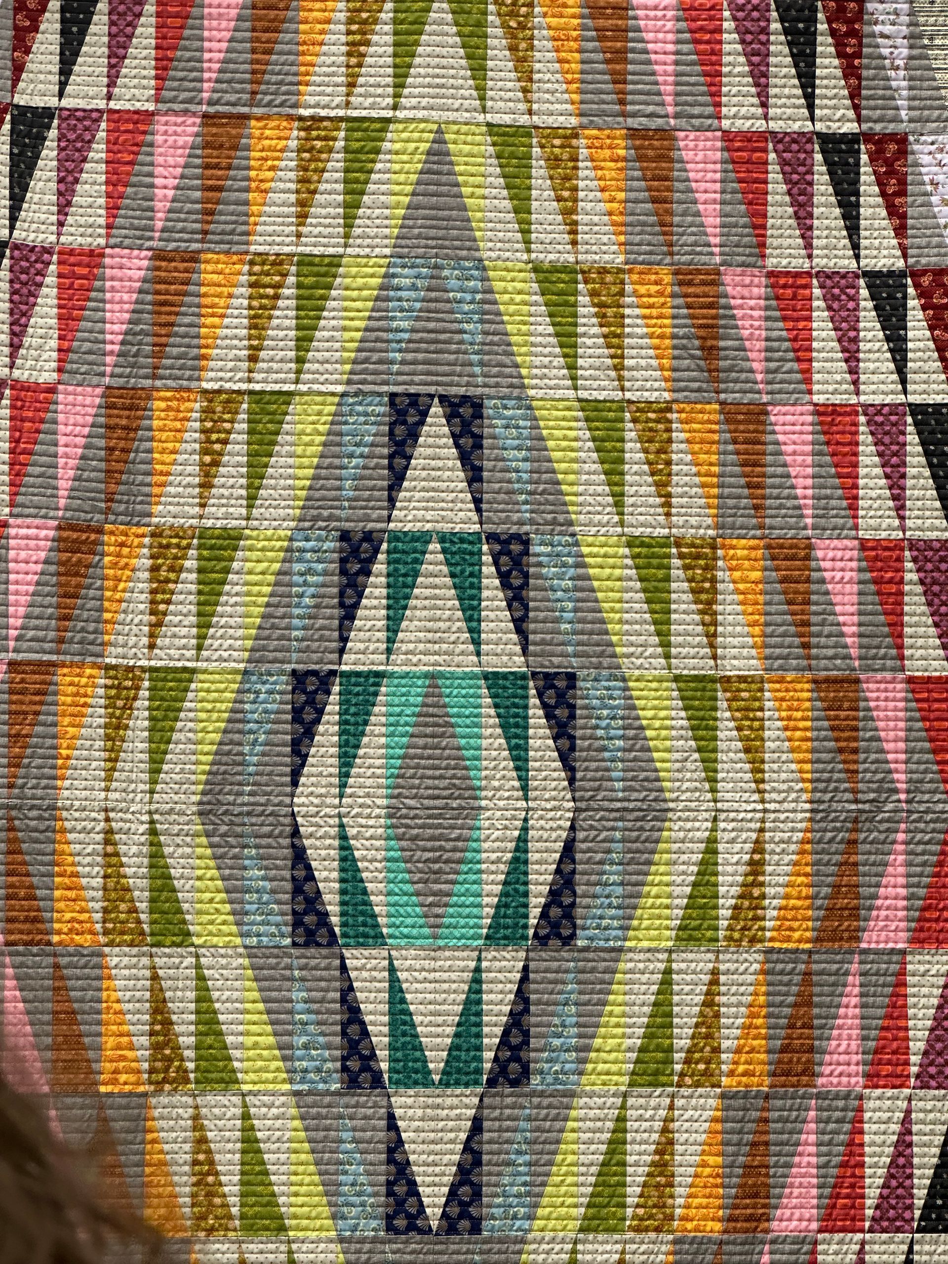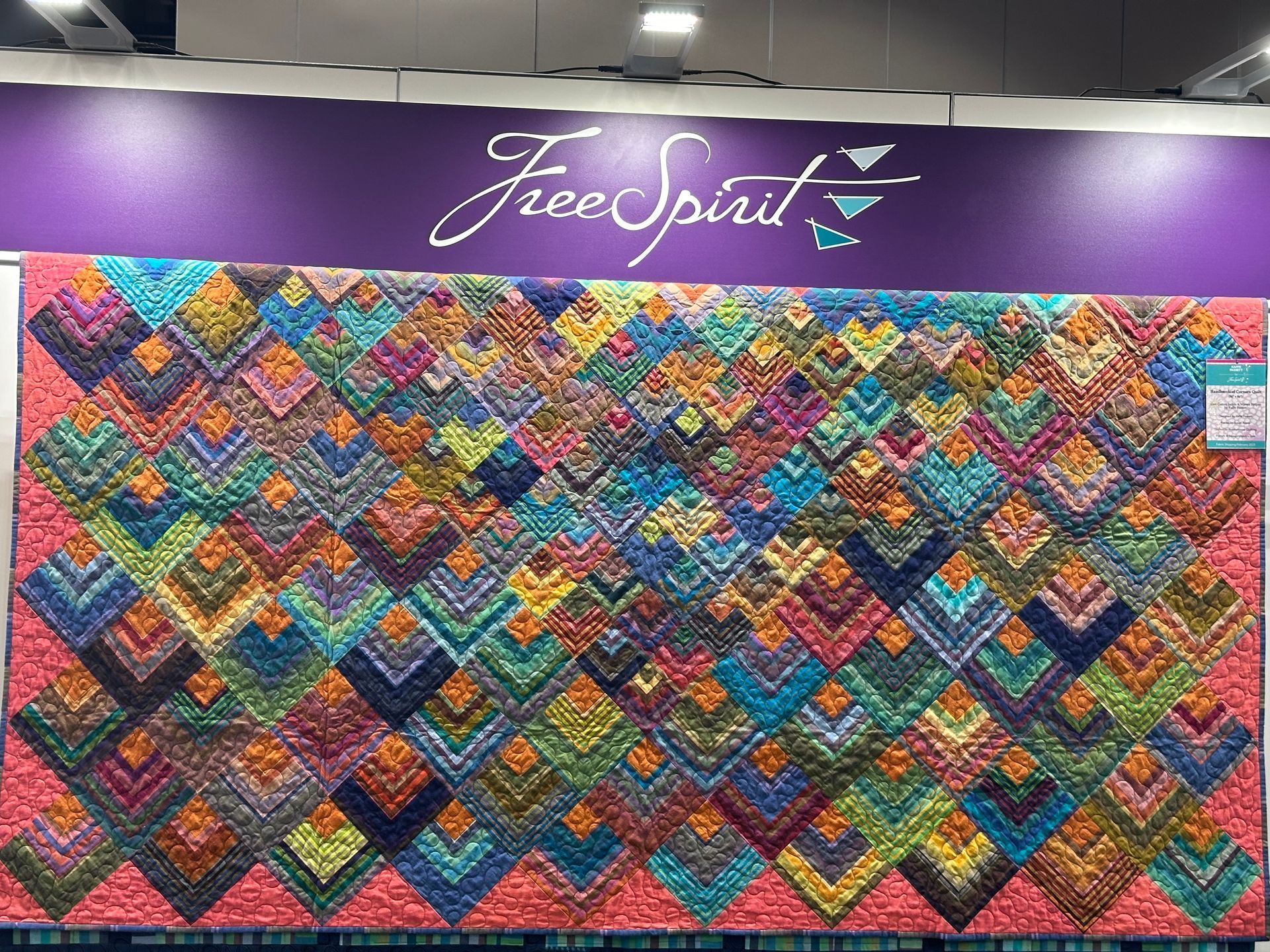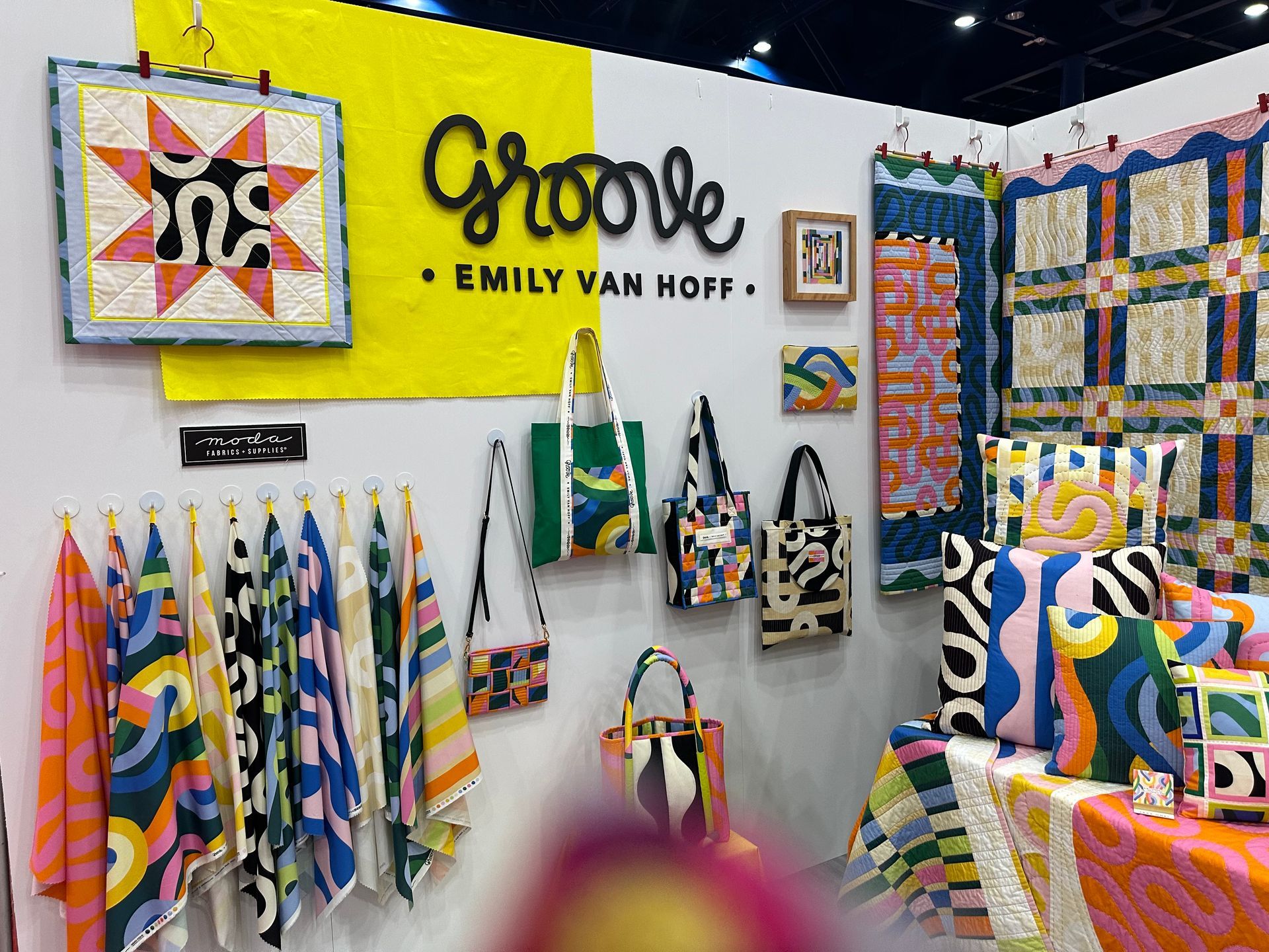 I also missed the renewed interest in stripes. Yes, Kaffe is coming out with new stripes, but stripes are much more dominant on social media than this market showed. And what about the color of quilting thread? The latest is to quilt quilts in threads that are not matching the background so much. More contrast. Now you can use a yellow thread on an black and white quilt for instance. I didn't see this. It was all still very blended. There is nothing wrong with that, but I would have loved to see more newer color options in quilting as well. It was safe. Very few art quilts. Most quilts