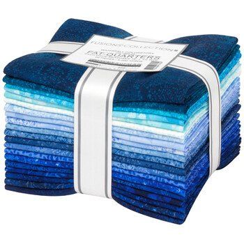 The Fusions by Robert Kaufman are now over 20 years old. The name stands for a blender, that is always a tone on tone, meaning the design is in about the same color as the background. In the Fusions there have been many different designs and over the years most have come and left again. Two stood out: the first one with number 4070 (flower bud) and a little bit later the fern print with the number 5573, which has been the biggest hit. When Fusions 5573 came out for the first time, in 2003, there were 29 colors. My mother, not a quilter at that time yet, asked me why I was buying so many of the same fabrics. "Wouldn't it be much better to have more variety instead of all the same fabrics?" She had no idea how quilters were using blenders and thought novelty prints were much better to have. Instead of 29 Fusions with the same design, she thought I could have a cat print, a watermelon, boat, flowers etc...Later she got it! But every time I see so many colors in one design, I hear the protective question of my mother in my mind. Sweet! As many of you know, I love big ranges! And I love to have all these choices: it is not necessarily about using, it is about having the luxury of having options. Big lines offer subtle changes and the more advanced quilters become, the more they appreciate these little changes.The Fusions 4070 and 5573 each have had well over 100 colors in their prime time. Gradually Robert Kaufman decreased the numbers but demand stays steady for the most popular colors. The top 30 colors are available in each.. Without doubt, the darker colors in the Fusions 5573 are still some of the very best.