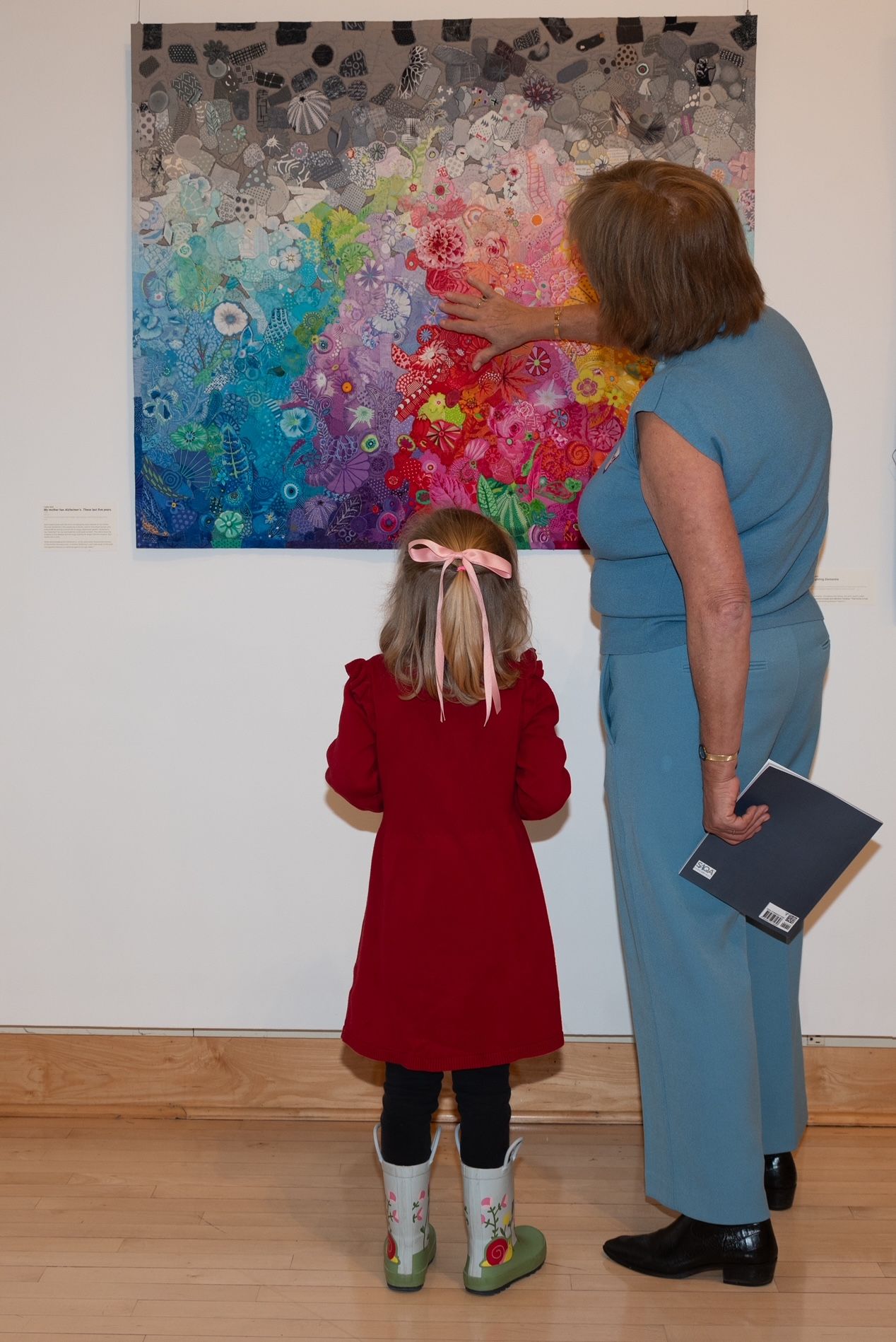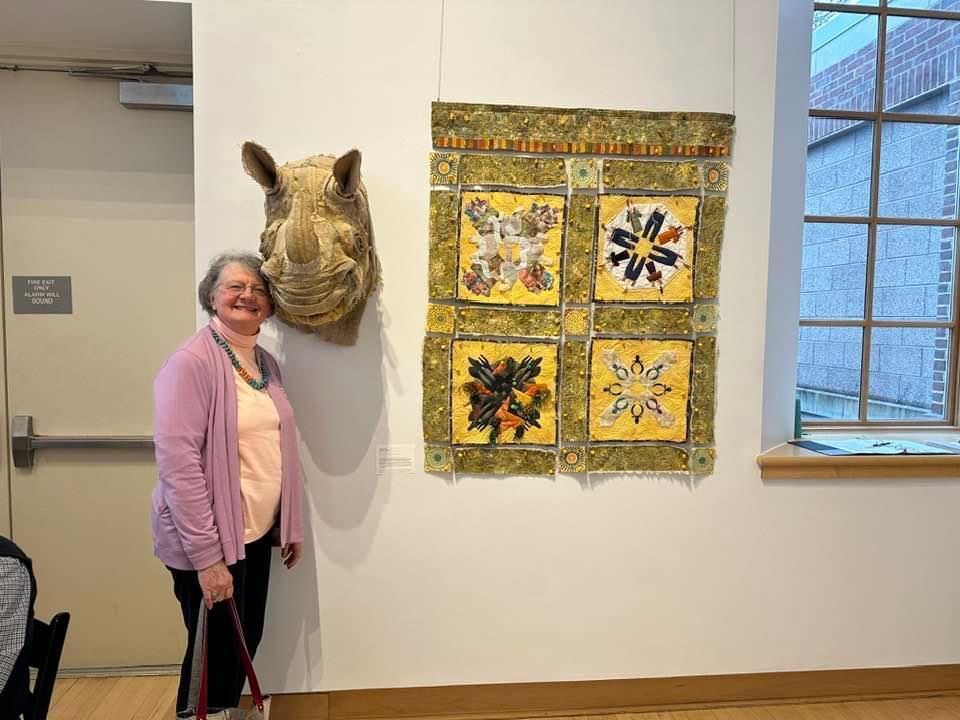 My VA-based family came to the artist's reception and granddaughter Nora loved the Rhino, made by Holly Lei Cole. "Veterans: Rhinos" is unbelievable indeed and an amazing fabric creation! Sew to speak becomes "Sewn to be Heard". That's really what it is about: some works appeal to us not so much because of what the maker has to say, but what we can see/understand. What we can identify with or relate to. My 4-year-old Nora has no connection with trauma, environmental concerns, or voting rights. A rhino is recognizable for her. Art shows us a mirror of who we are as well.