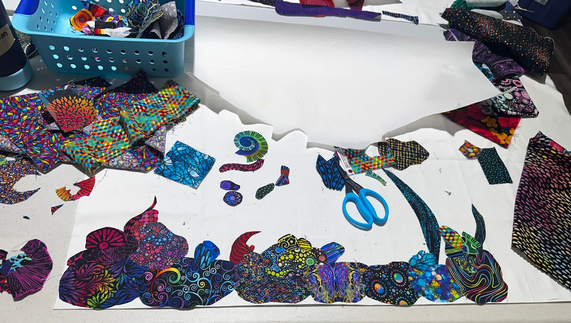 This new workshop will take all day (at least) and is another way of improvisational collage. There is a design concept, but students are free in the way they cut.