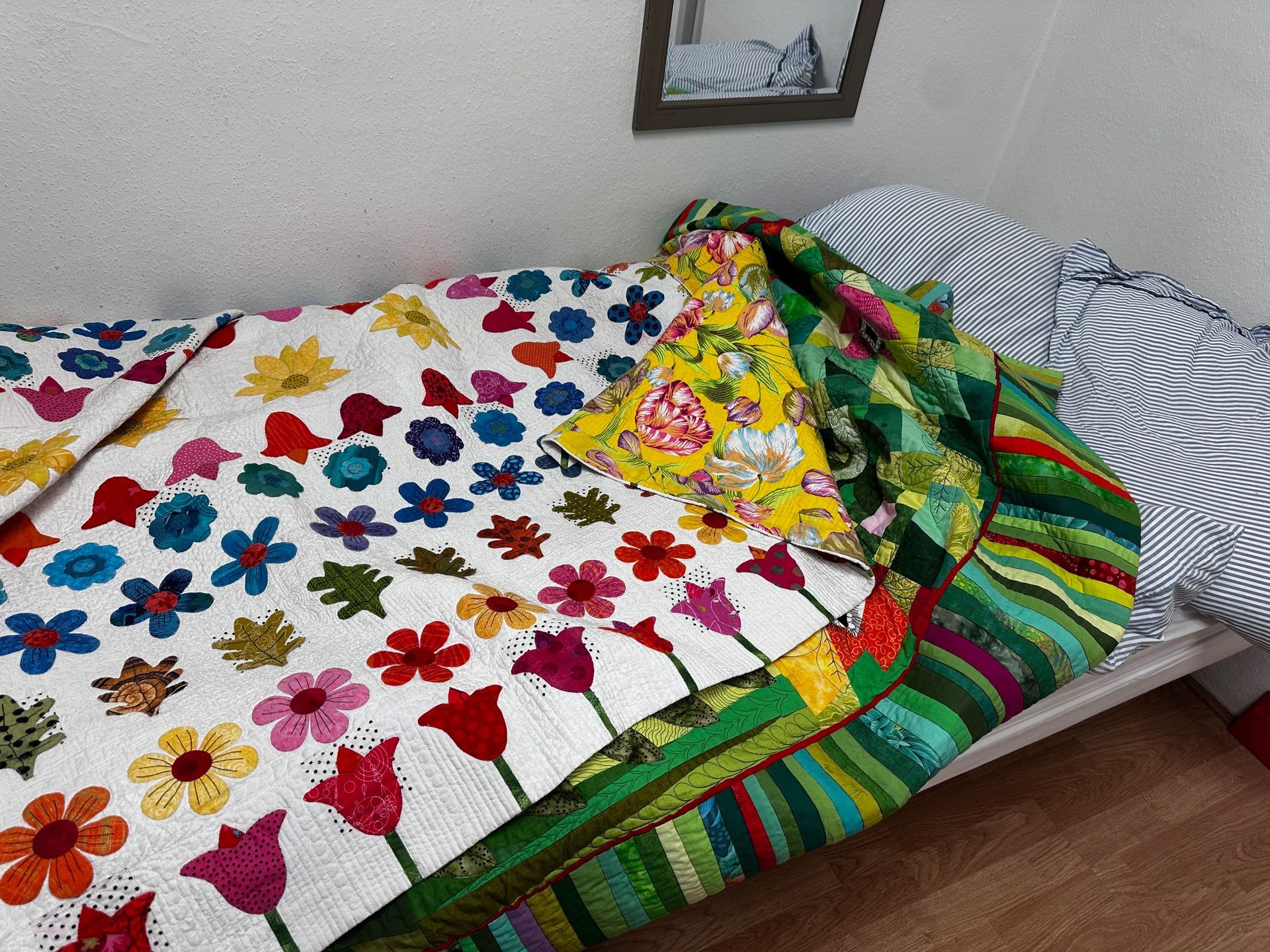 As her friend I got a special treatment and after this show it is even more special. You all can see her quilts, but I slept four nights in her sewing room. Her scraps were at my feet and my bed was comfortable as I slept under two of her quilts!! Who else can say she has slept under Ineke's quilts? I was laying in that sewing room, she calls it "my" room, feeling so lucky!